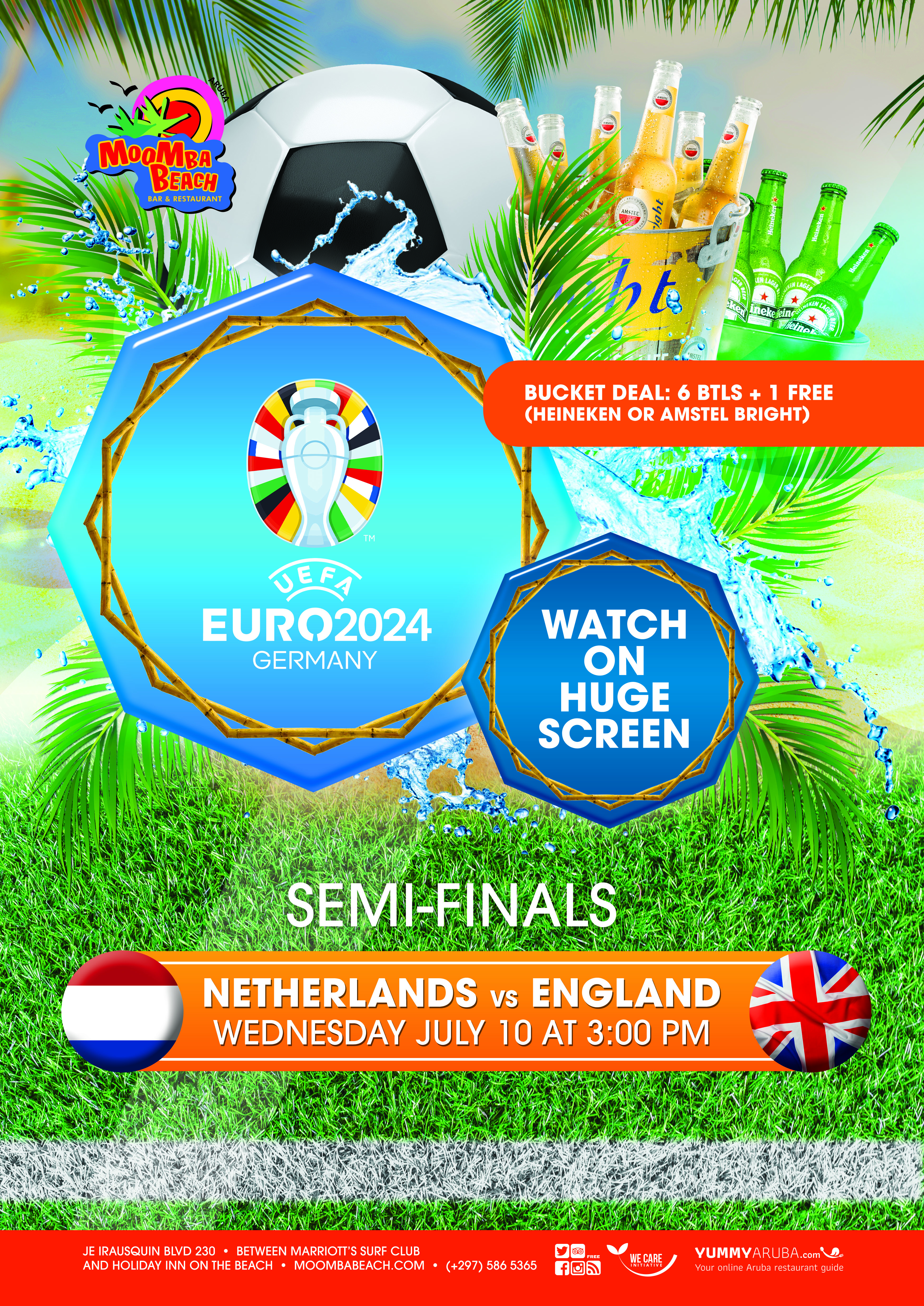 The Euros have reached fever pitch, and MooMba Beach is throwing a watch party that will have the sand shaking! Witness the Netherlands' epic semi-final clash against England in a way you never have before!