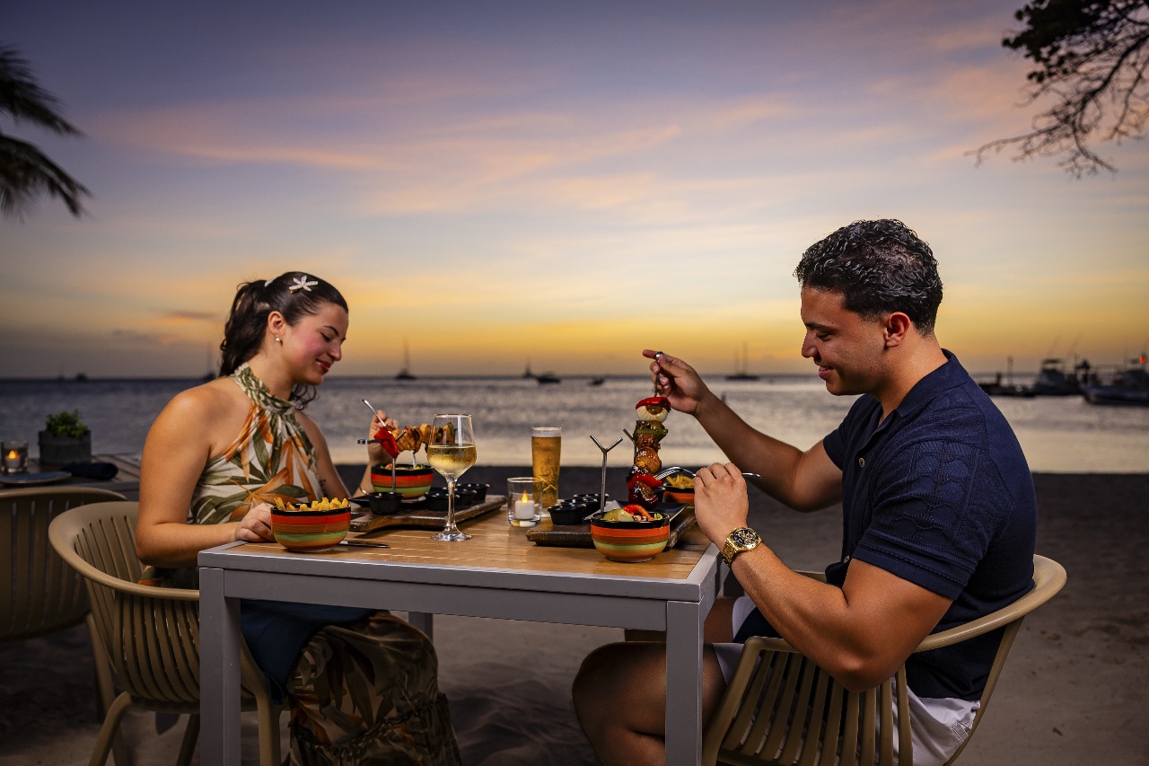 As the sun sets, MooMba transforms into the heart of Aruba’s nightlife scene. The bar comes alive with live bands and international DJs, turning the beach into an open-air celebration that draws locals and travelers alike. Drinks flow, music fills the air, and guests dance barefoot in the sand under the stars — an unforgettable experience that embodies Aruba’s vibrant spirit.