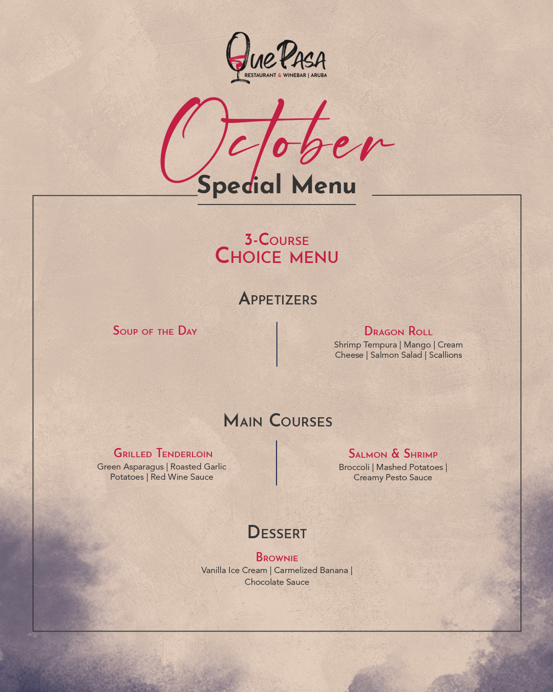 At only 59 Florins, Que Pasa’s October menu offers an incredible value without compromising on flavor or quality. It’s the perfect excuse to gather the people you love, enjoy a relaxed atmosphere, and treat yourself to a meal that feels special any night of the week.